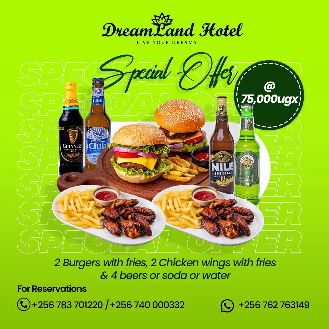 Ready to share good food and great vibes? Dreamland is serving up an irresistible deal that’s perfect for friends, couples, or anyone who loves a hearty feast! Dreamland Hotel Arua brings you a complete meal deal that’s perfect for sharing. For only 75,000 UGX, our...
