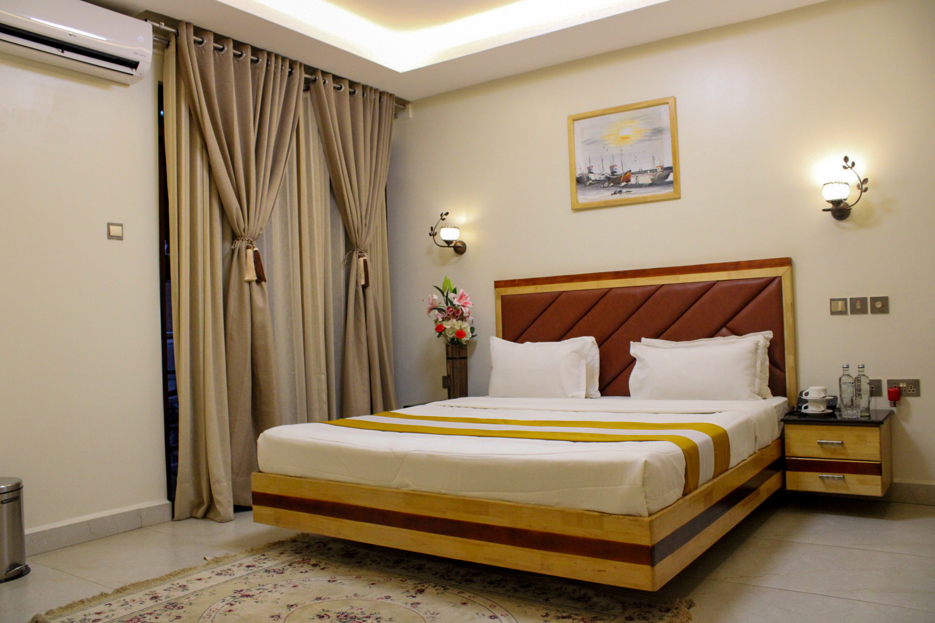 All rooms are fully equipped with an individually controlled air condition system, attached with a full private bathroom, smart television, fridge, fans, intercom, electric kettle, money safes and wireless internet access